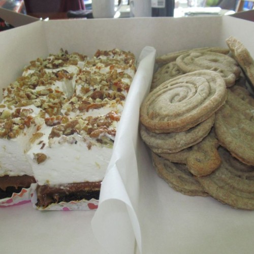 We have a roster of bakers and drivers who make and deliver the baking, which will arrive in commercial cardboard cake boxes with a flyer listing ingredients and a message from the baker.